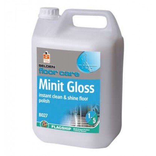| Specification | 5ltr single unit For best results the machine should be of medium speed NB. Minit Gloss is unsuitable for use on unsealed wood, unsealed cork or laminated flooring Minit Gloss has a built in cleaning agent and can be damp mopped at a dilution of 1 part to 10 parts water |