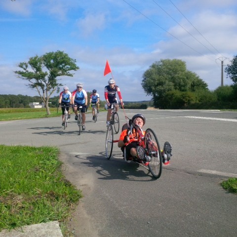 Ieuan Coombes cruising on the French cycle paths en route to Amiens on day 2.