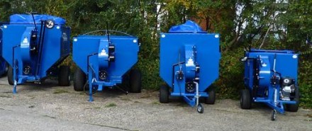 They are essentially a super-powerful vacuum with a hose or 'ground scoop' and a container to house all that is collected (which is sucked in and condensed into much smaller volume). The machine is pulled behind a towing vehicle, be it a quad, tractor, van etc.