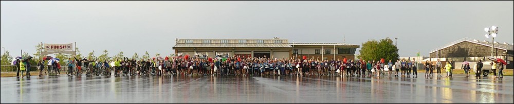 Whilst most people were putting their feet up in front of Saturday night TV with the rain hammering down outside, over 350 people braved the storms to run, cycle, hop, unicycle and walk 3km, 5km or 10km around the airfield at Farnborough.