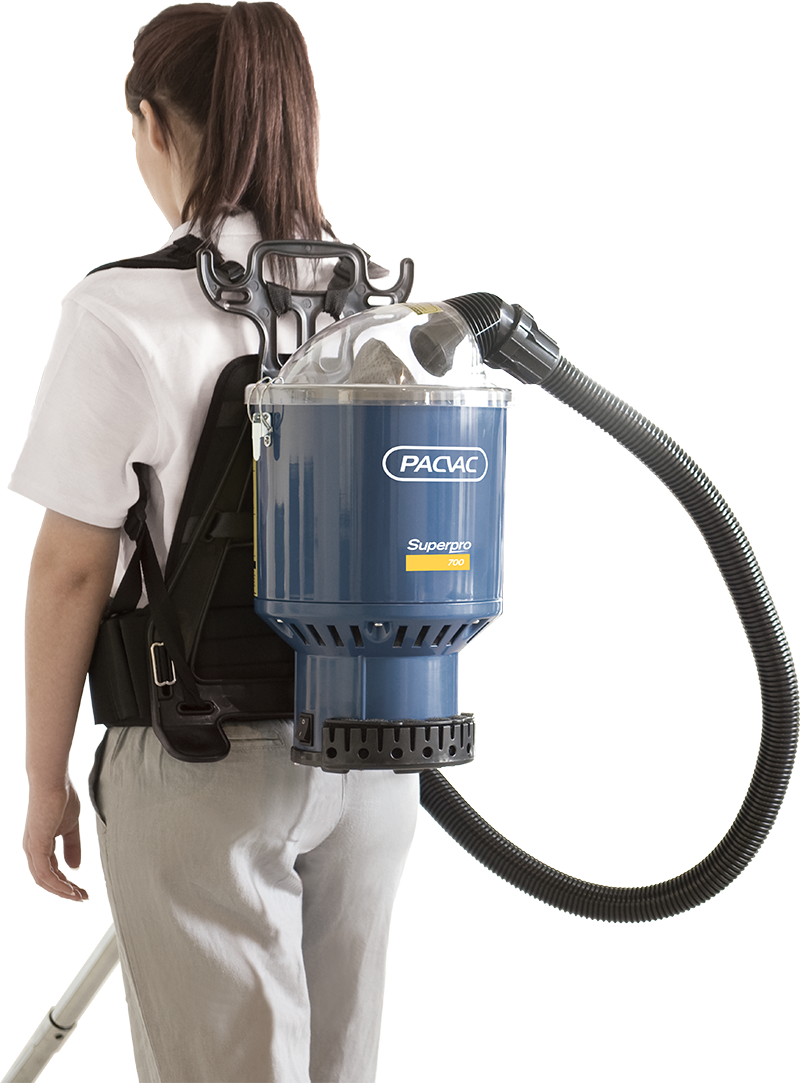 We've found that the Pacvac promotes better posture when vacuuming. Watch people use a tub or upright vacuum; they lean over. This creates unnecessary pressures on the lower back and slows down productivity.