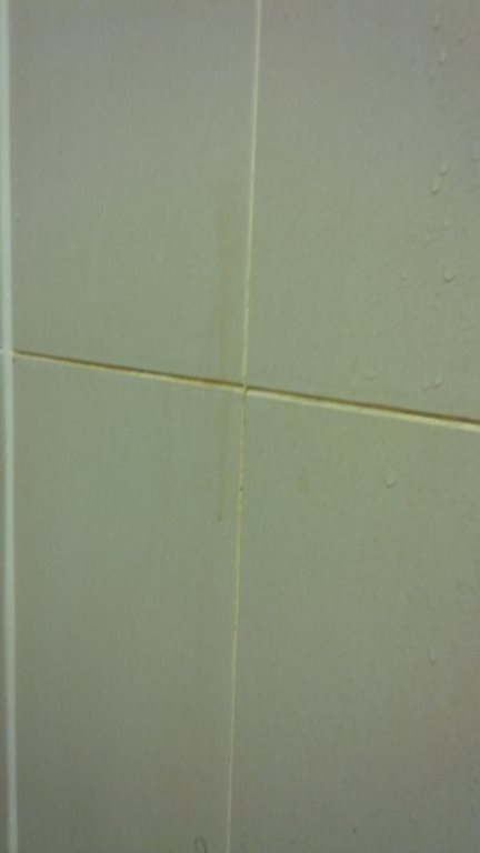 These images are from a health club shower. You see the orangey colour? This is caused by a compound called iron stearate which is deposited when body fat combines with the soap in shower gel.