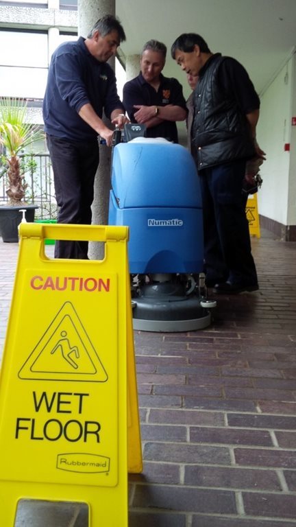 The cleaning team at Oxford University get to grips with the machine with the help of Richard, Numatic's super friendly demonstration specialist