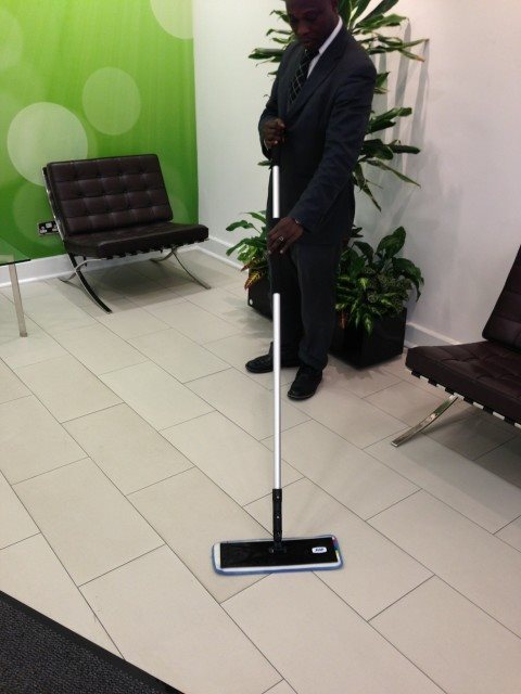 'Ollie told me that he had the perfect tool for my requirements and he was right. I have a very busy office entrance that has white tile flooring. In the rain and snow, the floor gets covered in dirty water and puddles from peoples shoes, bags, umbrellas etc.
